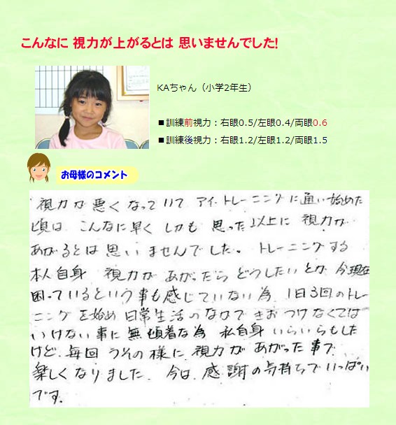 アイトレーニングを実践した子供たちの生の声、レビューをご紹介します。